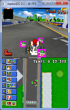the idea is to do things right and fast, akin to blargSNES, and make that emulator actually somewhat accurate (did you know that desmume maps the ARM9 BIOS to 0x0FF00000 instead of 0xFFFF0000? now you know) I also hope to emulate some things like memory protection, which would be convenient for development, but not sure how that will go I just want to inject some novelty in an increasing stale scene -- NO$GBA is putting all effort into DSi support, desmume is pretty much dead (and I'm not a fan of their crap) and all the others are long dead one of the things I want to implement is auto-compensation between ARM9 and ARM7, like in blargSNES (but hopefully working better), to try simulating the ARM9 and ARM7 running concurrently without completely killing performance ie. ARM9 runs for a maximum amount of cycles (that will be determined via testing), but stops before that if it starts waiting for an IRQ or if uses IPC to talk to the ARM7 then the ARM7 catches up to the ARM9, and so on with the DS, a convenient thing is that both CPUs run off the same base clock (33/66), unlike the CPU/SPC in the SNES who knows, maybe I'll get far enough to get into the wifi crap again ![]() if you have any ideas or remarks, feel free to go on ____________________ Kuribo64 -- NSMB2 hacking and other crap |
