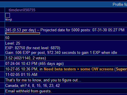 Also, wow, I used to be the 16th top poster? I am certainly not as post-happy anymore (obviously).
