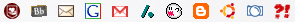 I've got in my bar: Smash Bros Dojo--SSBB Updates! Jul--Duh Board 2--Because I do Metroid 2002 Forums--For my Super Metroid Hacking needs SMWCentral--For SMW Hacking, though once Nightfall goes up, I'll move there IGN Wii--For Wii news, etc. Newgrounds--Because I like Flash animation Planet Zebeth--One of my favorite webcomics HomestarRunner--Everybody! Everybody! MetroidMetal.com--I'm still waiting for him to finish the next track Red Vs. Blue--Because I keep hoping they'll make new ones eventually xkcd--Go smart humor! Youtube--Why not? That's basically my bookmarks list, except they aren't in a bookmarks list. Go figure.