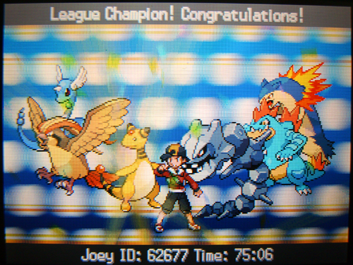 I just got done with the Kanto Power Plant thing, now to take on Misty. Already gotten Lt. Surge, Sabrina, Erika and Janine down for the count and I am anxious to get the GB Player. Team is doing fine at this point. Lockjaw/Feraligatr Level 49 Akaen/Typhlosion Level 48 Dio/Togekiss Level 49 Yamii/Ampharos Level 50 Exmortis/Gengar Level 47 Gaius/Tyranitar Level 56 ____________________ |