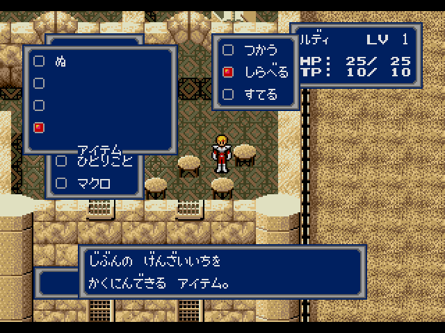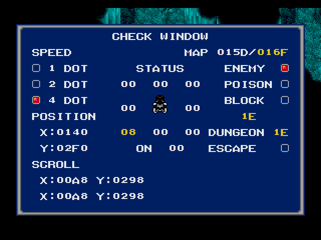 At offset 2ab9a3 an unused dungeon name is listed - GHOULFORST. There's some evidence more was originally planned for Dezolis and ended up cut for time/space like the ability to use the Aero-Prism outside of battle to do nothing. Whatever was planned for the Aero-Prism either got cut early on because there's no message for whatever the success message was supposed to be or it was going to be an event trigger and jump to a dialogue script.