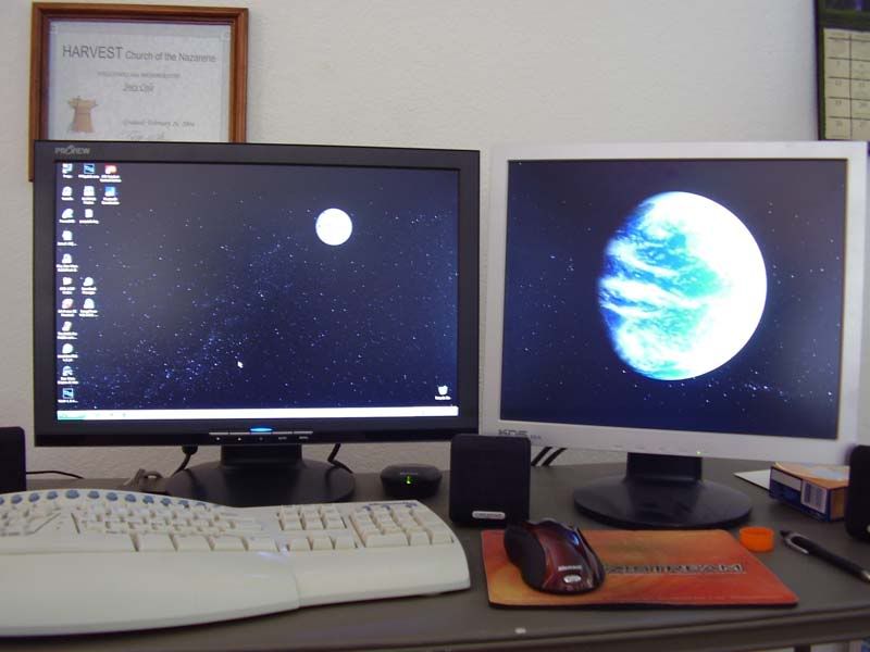 | This is what my desktop looks like. It's an old screenshot, but I haven't changed the background since then, although I have added, removed, and moved some icons. |