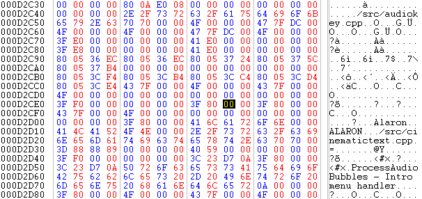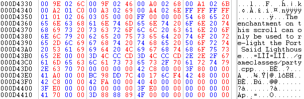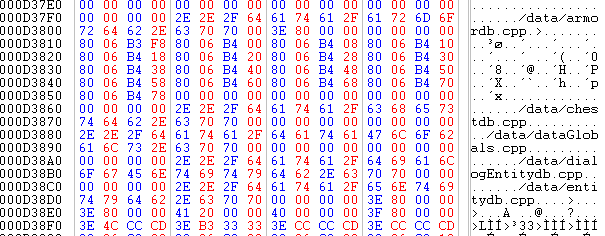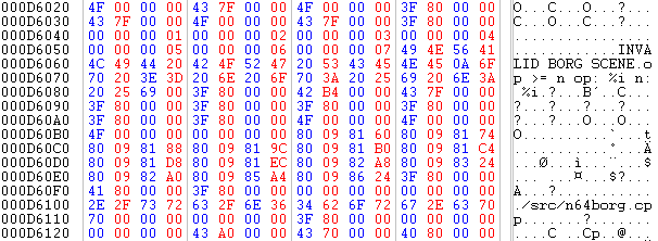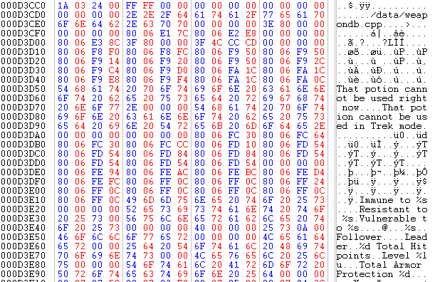 Not sure if anyone would find any of this interesting or not. Seeing as how this was an H2O game, I was hoping to find some insane, angry rant in the code. No such luck, but I did find (what looks like) a bunch of leftover developmental text:![]() Crash handling text? I've actually seen this game crash, but I can't remember if that's the text I saw on the screen when it did. May have been. ![]() I've noticed a lot of references to .cpp files. Anyone know what they are? ![]() Character rendering text? ![]() Background rendering text? ![]() Scale and Sphere Radius? Invalid node text... ![]() ![]() More of those .cpp file references. ![]() Map data error. ![]() Another .cpp. ![]() Oop! We've got a version number and a compile date! ![]() Another .cpp, and something about a default image? No clue... ![]() Just another one of those. ![]() More .cpp's, and an audio processor - Bubbles?? ![]() More of those things. ![]() Yeah, yeah, more... ![]() Another .cpp, and some text that's probably used in-game, except, "That potion cannot be used in Trek mode"? I don't remember the game ever referring to itself in such a meta-fashion. ![]() Do not know what those are, but they look interesting... ![]() Look at that! A reference to something related to the graphics? Apparently provided by someone at Nintendo? ![]() Error messages! ![]() Second time I've seen a "BORG Scene" referenced in these messages. Have no idea what it means. ![]() Well, considering how often the "Release Version" crashes, some info might not have hurt. =P ![]() Another .cpp and error message. ![]() Another .cpp and...The weird thing about this game is that most of its dialogue is in one huge block in the ROM, and is almost unreadable in a hex editor because of the characters that are stuck between letters. But there are a few messages near the beginning of the ROM, far away from the rest of the text, that are perfectly readable, like this one, of all things... ![]() Near the end of the ROM, there's a bunch of these "Expansion" messages between the enemy attack names, which I'm guessing are filler for more attacks that were never put in. ![]() Okay, um... where is there a hockey stick in this game?? Granted, I don't remember every last detail of it, but that seems really out-of-place. And I Googled, "Aidyn Chronicles hockey stick" and it didn't bring up anything enlightening. There's also a crapload of weirdness near the end of the ROM that I'm going to take a closer look at... |