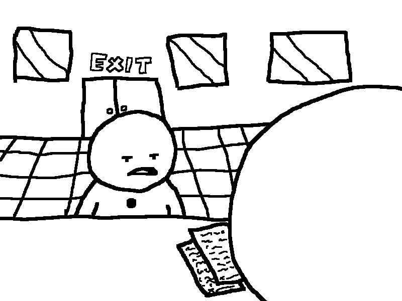 | Hoping to find something to bribe him with, you look around to see if there are any items of value nearby, but you find nothing. Instead, you take the sign out of your inventory and offer him it in exchange for some information. ![]() The large person behind the desk politely declines. You place the sign back in your inventory. It looks like all of your plans have failed, so you lean over and demand to be given some answers! You explain in explicit detail that his health might otherwise be at serious risk! ![]() The large person behind the desk puts on a great big smile. Confused, you just stand there. ![]() The large person behind the desk politely informs you that it is not a good idea to threaten him. You decide to reconsider whatever it was you were going to do next. |