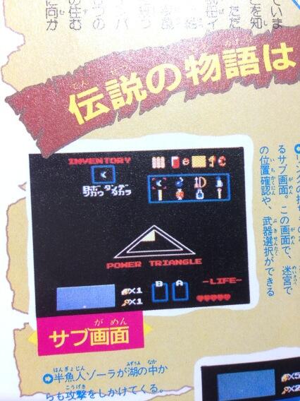 Link seems to have no shield and the key is in a location that is not used in the final version. There was a very interesting picture also: ![]() "POWER TRIANGLE" instead of "TRIFORCE". The name "Triforce" should not even exist at the time. It seems that the Magic Wand is a different color ... ____________________