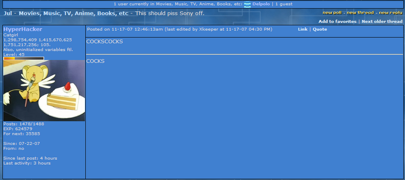 | Rick M'Lord, there's a knife in your head! Level: 152 ![]() Posts: 6781/7539 EXP: 43656804 For next: 644856 Since: 02-15-10 From: Maine Since last post: 110 days Last activity: 42 days |