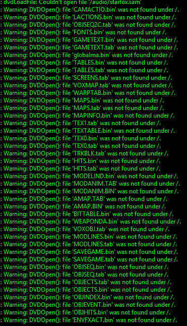 Notably absent: AUDIO.bin/tab (music files), MUSIC.bin/tab (soundfont), SFX.bin/tab (sound effects), MPEG.bin/tab (mp3 voice files), BLOCKS.bin/tab (world blocks), MODELS.bin/tab (object models), and TEX.bin/tab (textures). Would make sense if those archives are the last remnants of the game before the conversion to GC/SFA. Interesting though that it tries to load TEX1.tab, but not TEX1.bin.